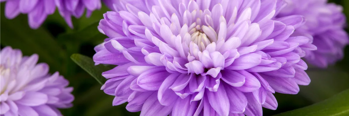 Mit spätblühenden Glattblatt-Astern (Aster novi-belgii) können Sie noch bis Oktober farbige Highlights in Ihren Garten bringen. Die winterharten Stauden erreichen eine Höhe von bis zu 1,20 m. Pflanzen sollten Sie sie nicht zu dicht, achten Sie dabei auf einen sonnigen Standort. Als wichtige Pflegegrundsätze gelten der Rückschnitt nach der Blüte und das Vermeiden von Staunässe.