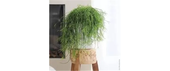Der Bolivianische Blattkaktus (Lepismium bolivianum) hat vierkantige sukkulente Triebe, die ihn sehr interessant machen. Wie eine Haarpracht hängen sie entspannt über den Topf.