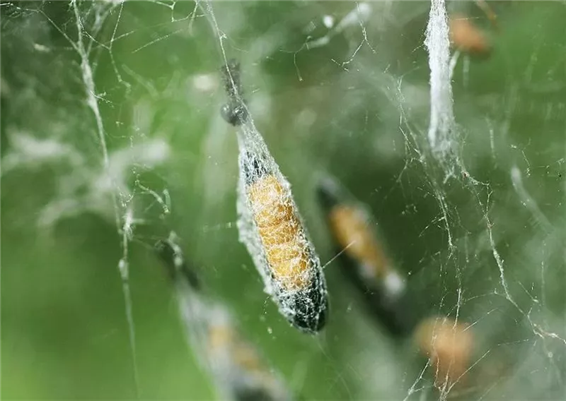 Im Mai und Juni sind an einzelnen Ästen auffällige Gespinste zu finden. Bei näherer Betrachtung ist zu erkennen, dass sich in diesen Gespinsten eine Vielzahl von gelblichen oder hellgrauen Räupchen befindet.