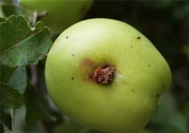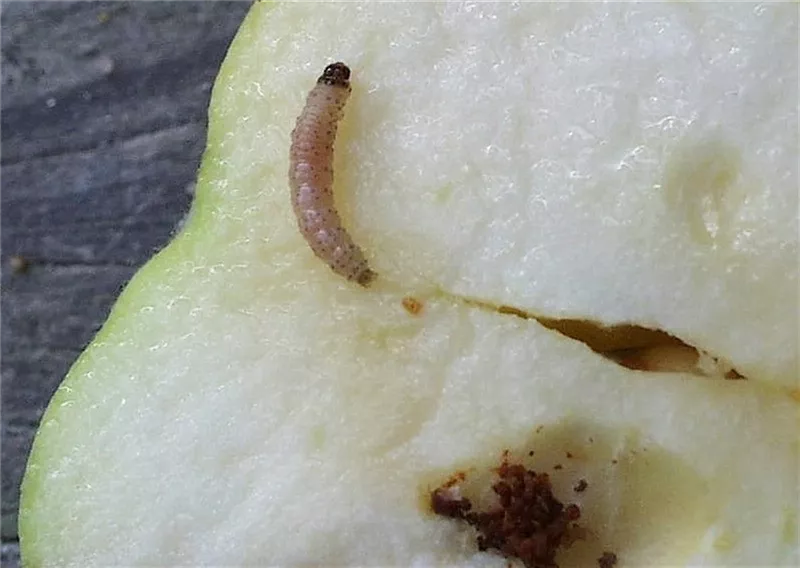Die aus den Eiern schlüpfenden Larven (Räupchen) bohren sich alsbald in die Frucht ein.