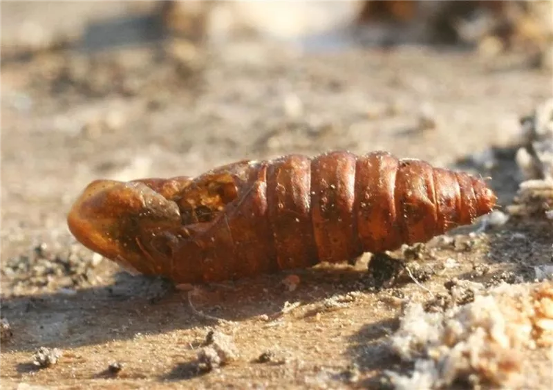 Nach drei bis fünf Wochen ist die Raupenentwicklung abgeschlossen. Die Tiere verlassen die Birne und suchen sich zur Verpuppung ein Versteck unter Borkenschuppen, in Stammritzen und ähnlichen Verstecken.