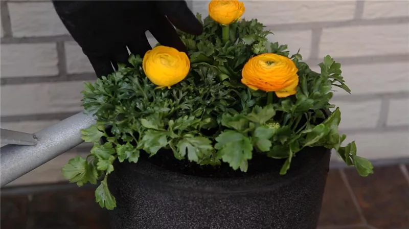 Bei diesen Blumen sollten Sie die Erde gleichmäßig feucht halten, vermeiden Sie aber bei Ranunkeln unbedingt Staunässe: Achten Sie darauf, dass sich im Untersetzer oder Übertopf (soweit vorhanden) kein Gießwasser ansammelt.