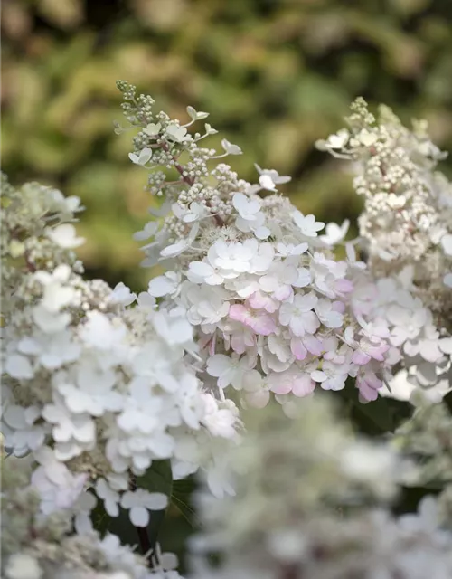 Die weißen, später rosafarbenen Blüten der Rispenhortensie 'Pinky Winky'® erscheinen in Rispen von Juli bis September. Diese sind angenehm duftend.
